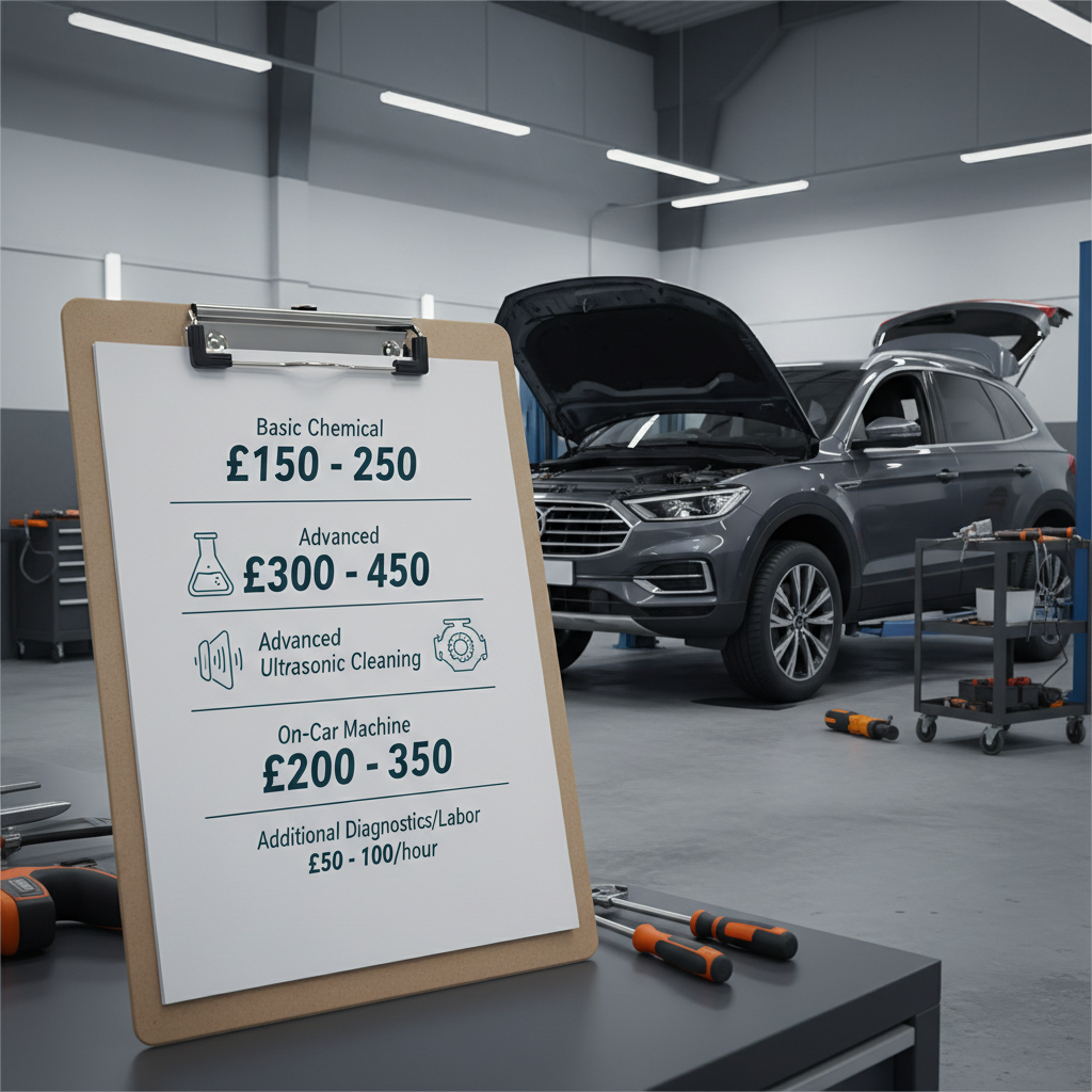 • Professional on‑car DPF clean: typically a few hundred pounds, including diagnostics and flow testing.